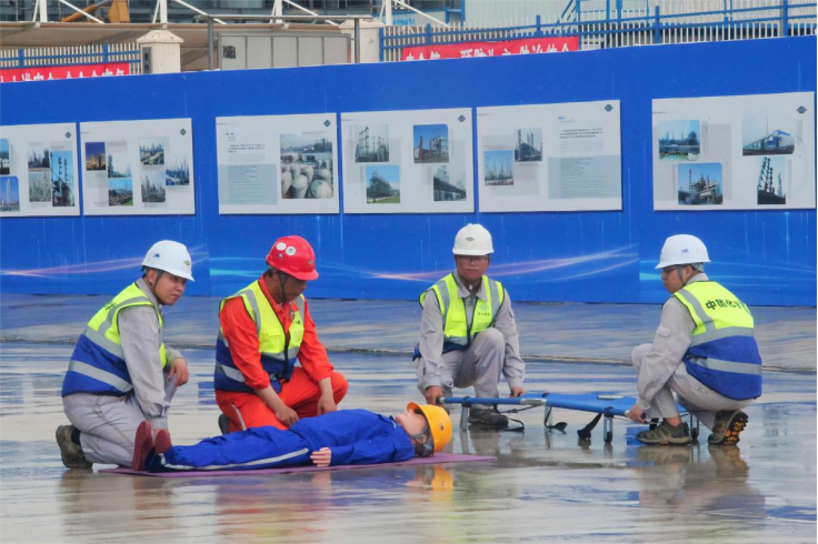 為切實(shí)提高施工現(xiàn)場突發(fā)安全事故應(yīng)急處置能力,6月25日,華北公司河南晉開延化項(xiàng)目部聯(lián)合業(yè)主在尿素主框架區(qū)域組織開展高處墜落應(yīng)急演練。