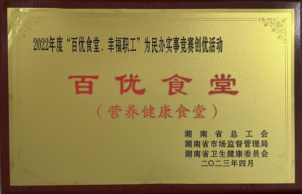 又訊,在湖南省2022年度“百優(yōu)食堂、幸福職工”為民辦實事競賽創(chuàng)優(yōu)活動中,公司四化大廈食堂榮獲湖南省“百優(yōu)食堂”稱號。