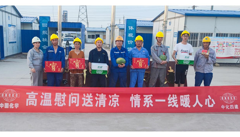 7月15日,東北公司在滄州旭陽化工項目組織開展“高溫慰問送清涼、情系一線暖人心”活動,為一線職工送去西瓜、涼茶、藿香正氣水等防暑降溫物品,并叮囑做好防暑降溫工作,預防各類事故發(fā)生,為項目竣工投產作貢獻。