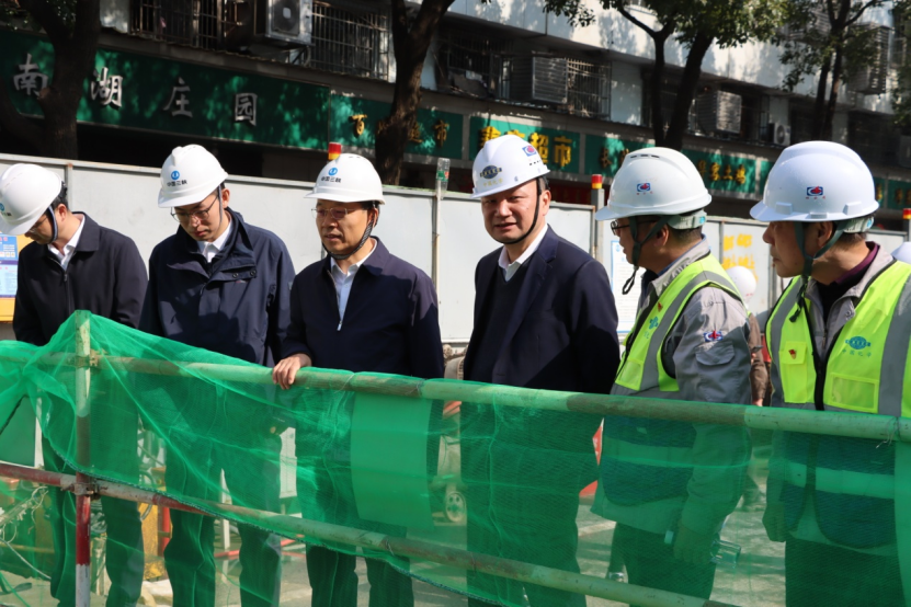 王殿常一行先后來到了項目部西瓜山濕地公園和求索西路雨污分流改造工程調研。彼時的西瓜山濕地公園湖水碧波蕩漾,岸坡綠草青青,改造后的西瓜山項目污澇同治、成效顯著,大家實地見證了從黑臭水體到“城市綠肺”的華麗轉身,開園后將成為九華山片區(qū)周邊居民打卡休閑的好去處。另一處的求索西路雨污分流改造工程采用頂管施工技術,作業(yè)人員正在進行倒掛壁和頂管施工,通過新建污水管網打通“主動脈”。該處為南津港片區(qū)污水主干管,收集南津港周邊污水,提高COD濃度,減輕南津港污水處理廠壓力,達到提質增效的目的。