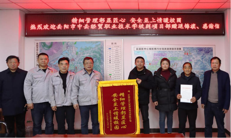 岳陽(yáng)污水治理項(xiàng)目部獲中岳經(jīng)貿(mào)學(xué)校贈(zèng)送錦旗和感謝信