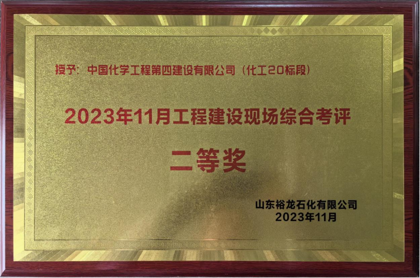 山東裕龍項(xiàng)目化工20標(biāo)段現(xiàn)場(chǎng)綜合考評(píng)獲“二等獎(jiǎng)”