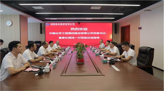 8月20日下午,中國化學(xué)四公司黨委書記、董事長周鴻赴長沙拜訪湖南省輕工鹽業(yè)集團(tuán)黨委書記、董事長馬天毅,雙方就進(jìn)一步深化合作交流,實(shí)現(xiàn)互利共贏發(fā)展進(jìn)行座談。