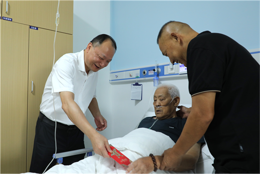 在看望慰問(wèn)老同志王允平、韓興榮時(shí),周鴻與他們親切交談,關(guān)切詢(xún)問(wèn)他們的生活起居和身體情況,向他們?yōu)閲?guó)家事業(yè)和公司發(fā)展壯大作出的貢獻(xiàn)表示感謝。衷心祝愿老同志健康長(zhǎng)壽、闔家幸福,繼續(xù)關(guān)注公司事業(yè)發(fā)展,多提寶貴意見(jiàn)建議,推動(dòng)黨的事業(yè)薪火相傳。他同時(shí)還叮囑有關(guān)部門(mén)要格外關(guān)心老同志,切實(shí)做好各項(xiàng)服務(wù)工作,讓他們安享晚年、幸福生活。
