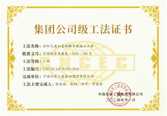 建筑工程公司“拉桿式盤扣懸挑腳手架施工工法”被認(rèn)定為集團(tuán)級(jí)工法