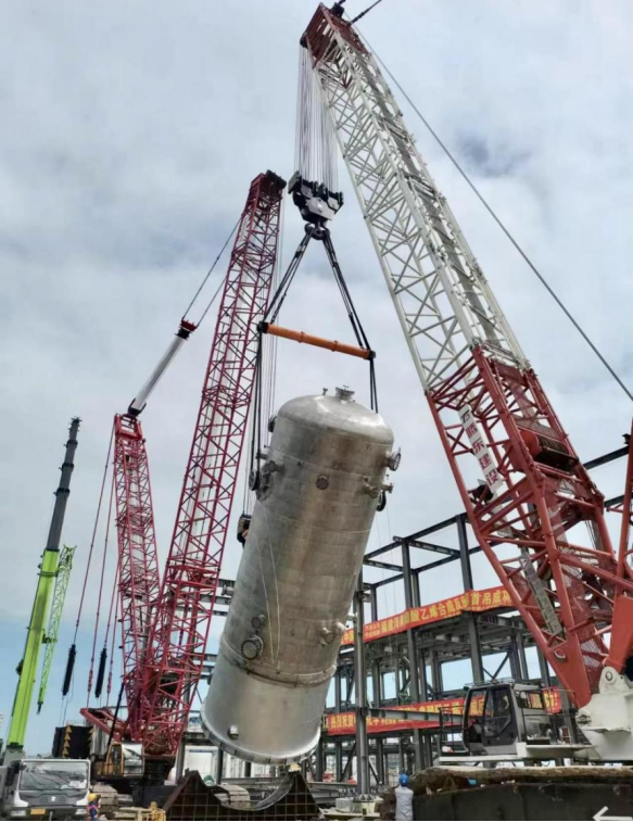 近日,華南公司福建能化集團氯堿搬遷年產20萬噸醋酸乙烯項目順利完成385噸合成反應器吊裝。